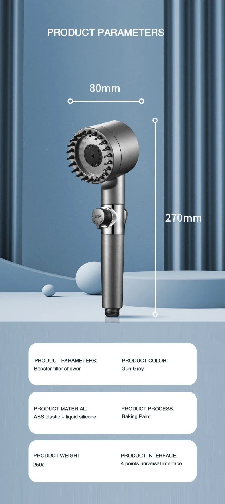Thanks to its optimized micro-jets, it increases pressure while reducing water consumption. Made of durable alloy and equipped with a convenient STOP button, it delivers a powerful, comfortable, and economical spray.